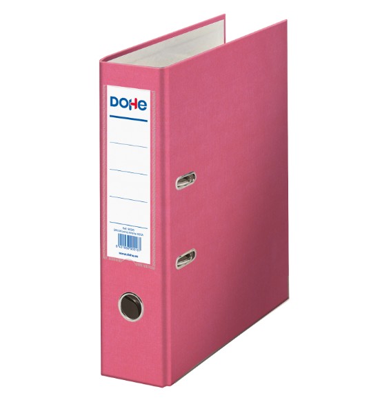 Arxivadors fabricats en cartró rígid, folrat amb polipropilè de colors a l'exterior i paper òfset blanc a l'interior. Amb ollao i targeter al llom i cantonera llarga metàl·lica per reforçar les vores inferiors. Mecanisme de palanca metàl·lic niquelat de màxima qualitat.