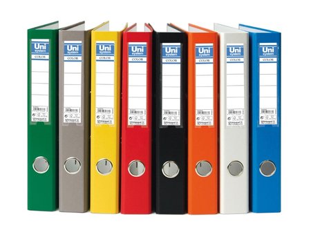Arxivador de palanca fabricat en cartró folrat de polipropilè de colors, amb cartró certificat FSC®. Incorpora mecanisme de palanca niquelat de 45 mm, cantoneres llargues, ollao al llom, ranures frontals i portaetiquetes amb cartolina impresa. Disponible en formats A4 i foli, i en diversos colors.