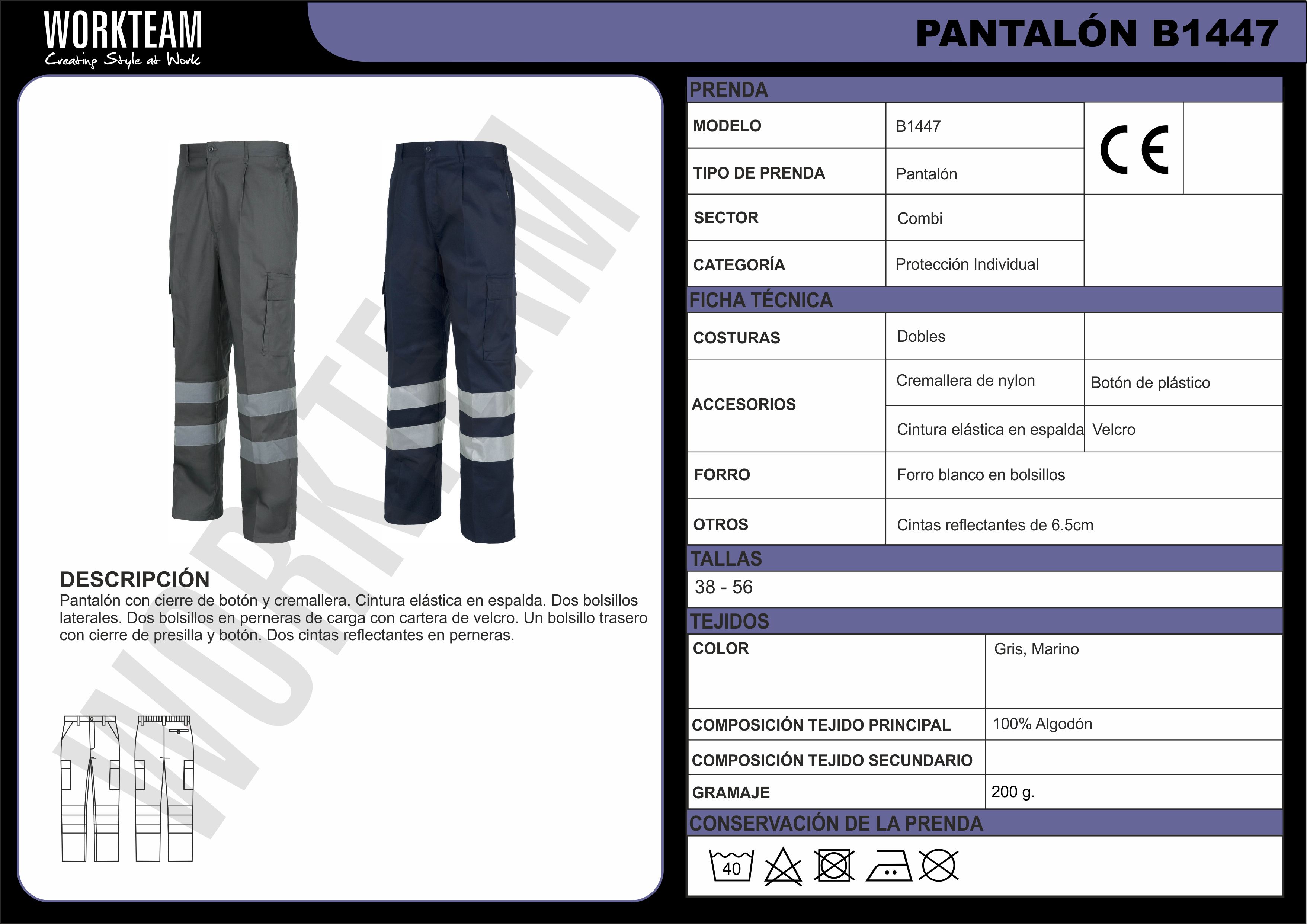 Pantaló recte de cotó amb cintes reflectants.