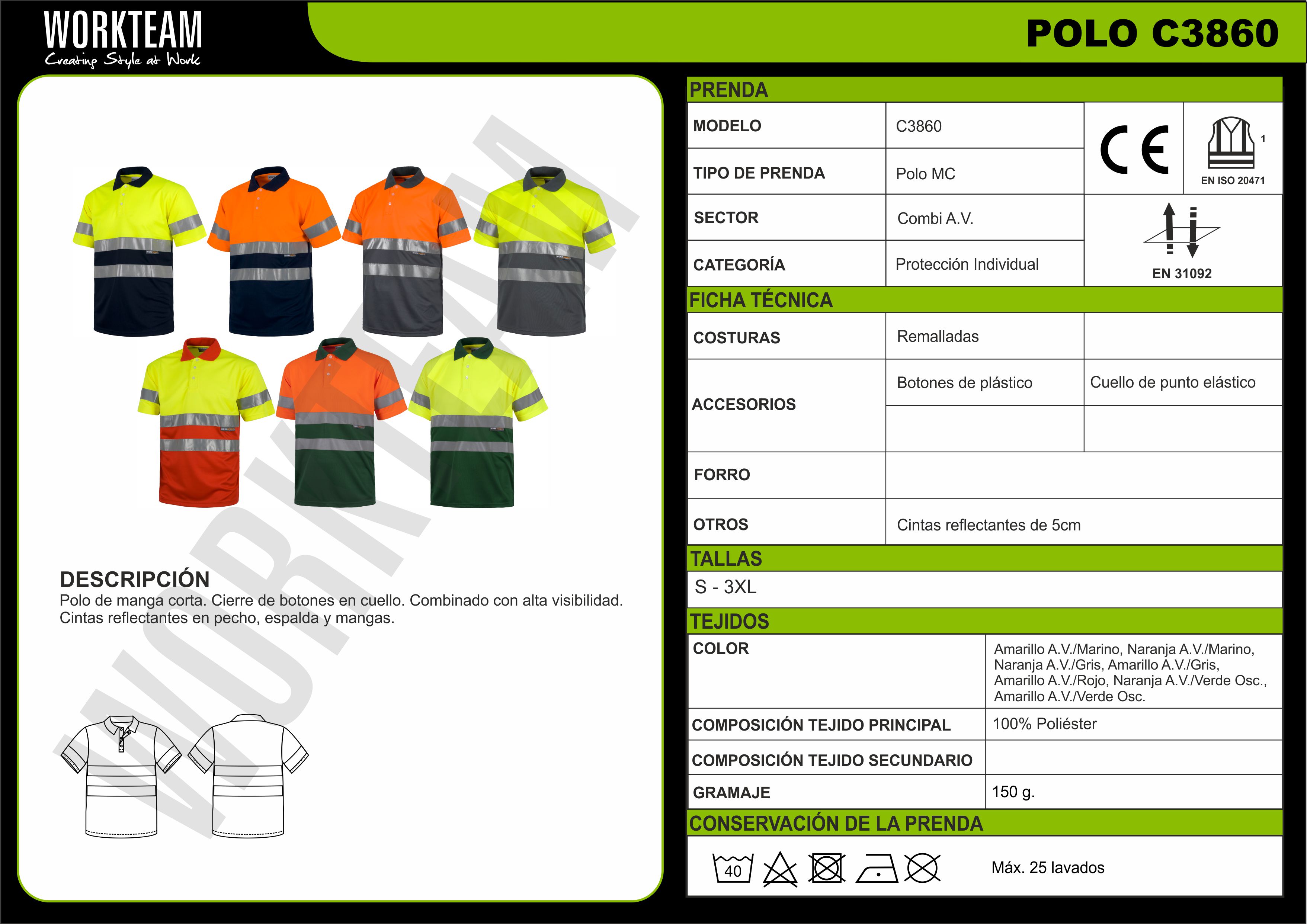 Polo combinado de manga corta en poliéster ojo de perdiz con cintas reflectantes.